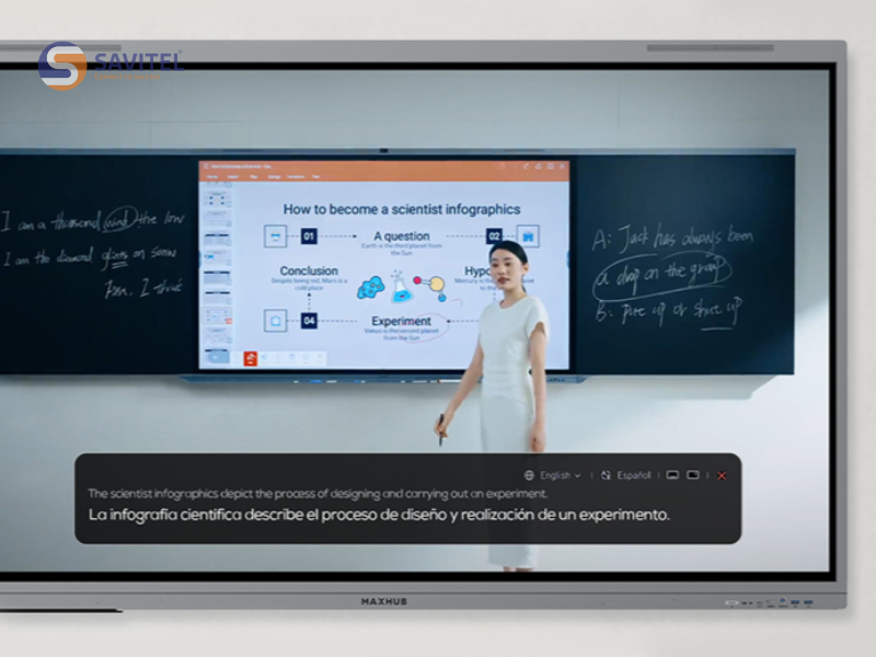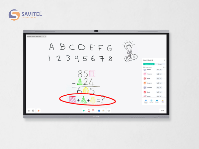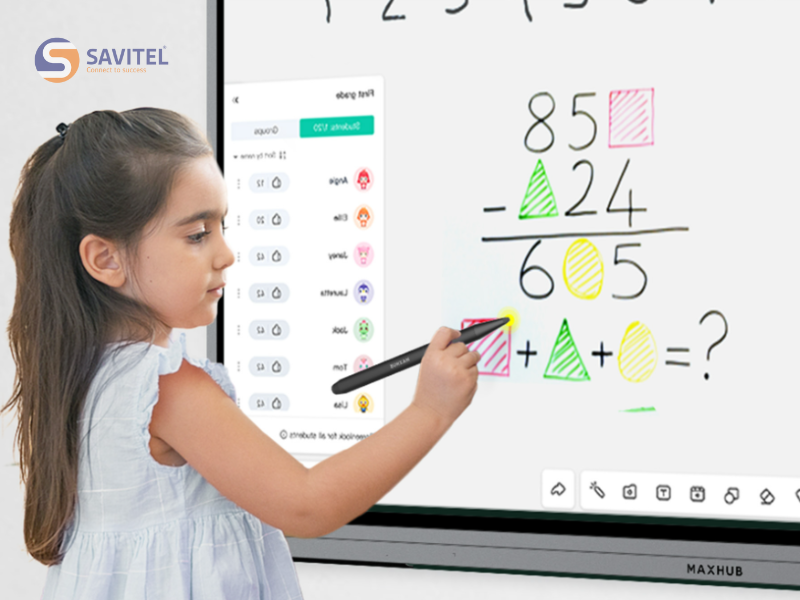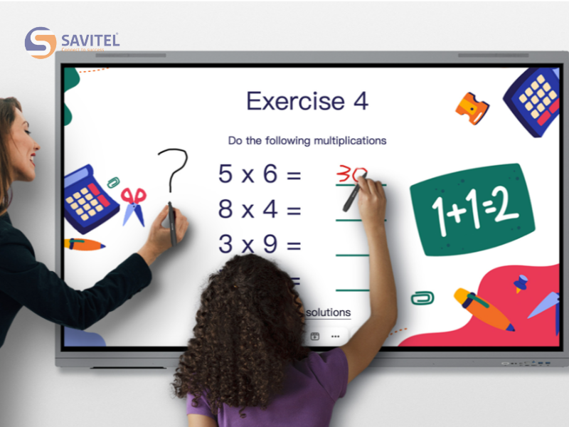 Tạo ra một môi trường học tập thực sự hấp dẫn với màn hình cảm ứng tương tác của chúng tôi. Với tối đa 40 điểm chạm đồng thời, nhiều học sinh có thể tương tác với màn hình cùng lúc, thúc đẩy sự hợp tác và sáng tạo.