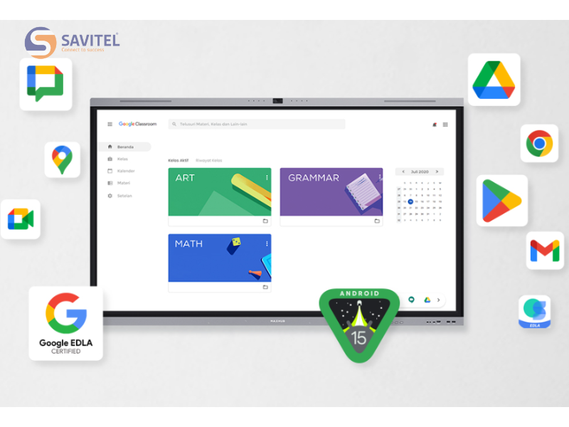 Nền tảng MAXHUB EDU dựa trên Android 14, được chứng nhận Google EDLA, đảm bảo tính ổn định và bảo mật. Đi kèm là hệ sinh thái Google quen thuộc như Classroom, Play Store và YouTube.