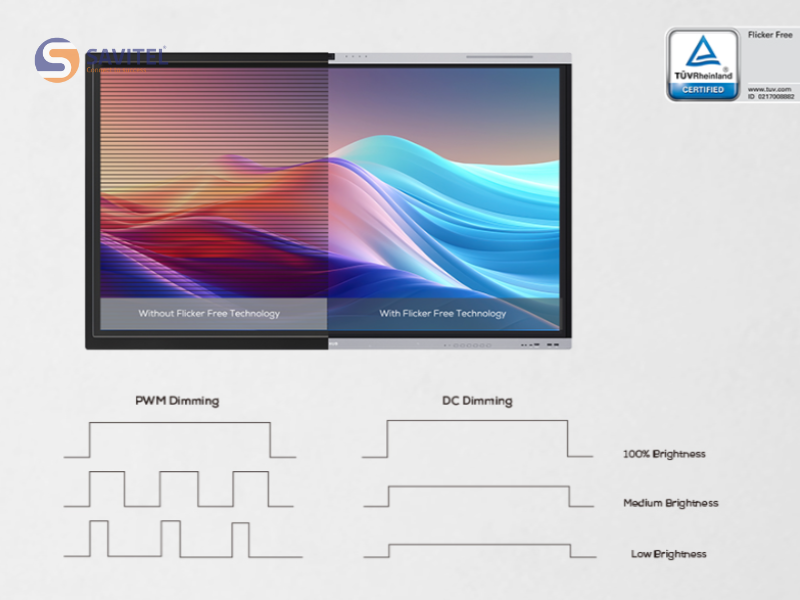 Cơ chế điều chỉnh độ sáng trực tiếp của DC Dimming giúp loại bỏ hiện tượng nhấp nháy thường gặp ở PWM. Nhờ đó, người dùng cảm nhận độ ổn định của khung hình và giảm thiểu nhức mỏi khi làm việc hoặc giải trí lâu dài.