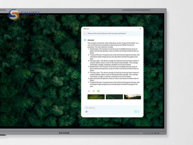 Sở hữu những ưu điểm vượt trội về hiển thị, âm thanh, AI và khả năng tương tác, thiết bị mang đến trải nghiệm trực quan, tối ưu cho giảng dạy, làm việc và giải trí. Các công nghệ mới được tích hợp giúp nâng cao chất lượng hình ảnh, giảm mỏi mắt, đồng thời tối ưu tốc độ xử lý và khả năng kết nối đa dạng.