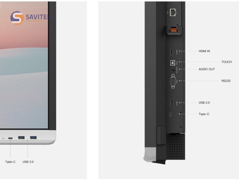 MAXHUB V5 Classic Series được trang bị 2 cổng USB Type-C, cho phép kết nối laptop để chiếu màn hình và phát âm thanh trực tiếp qua thiết bị V5, đồng thời hỗ trợ điều khiển cảm ứng ngược.